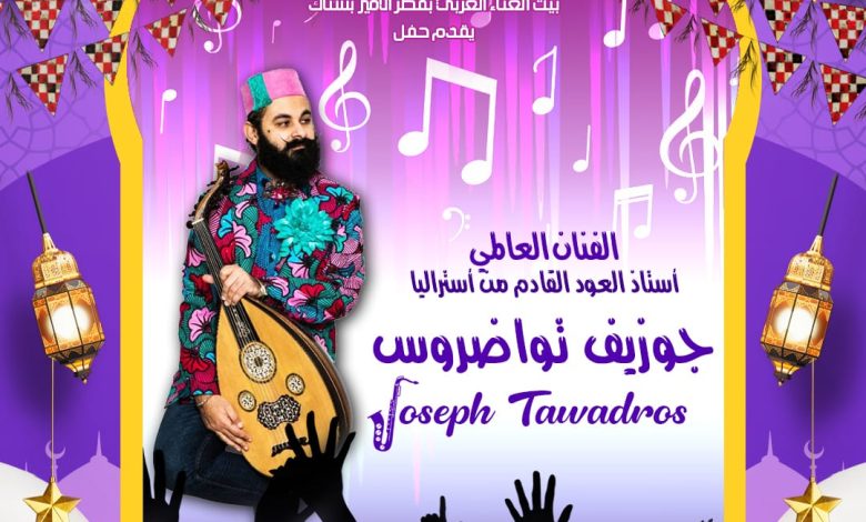 يستضيف بيت الغناء العربي بقصر الأمير بشتاك، بشارع المعز لدين الله الفاطمي، الفنان العالمي وعازف العود جوزيف تواضروس، في التاسعة مساء الخميس 5 مارس الموافق 15 رمضان، ضمن فعاليات ليالي رمضان الثقافية التي ينظمها صندوق التنمية الثقافية.