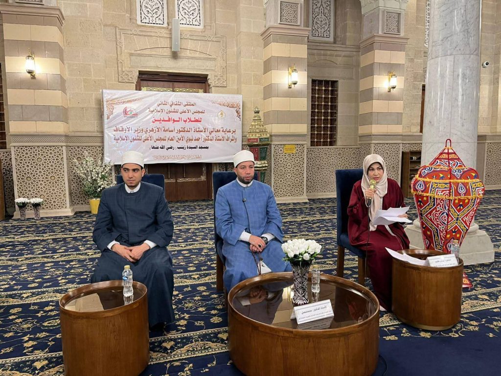 نظم المجلس الأعلى للشئون الإسلامية، برعاية الأستاذ الدكتور أسامة الأزهري – وزير الأوقاف، وإشراف الدكتور أحمد نبوي – الأمين العام للمجلس، اليوم الثلاثاء، ثالث لقاءات “الملتقى الفكري الثاني للطلاب الوافدين” بمسجد السيدة زينب -رضي الله عنها-، والذي أدارته الإعلامية الدكتورة جيهان طلعت.