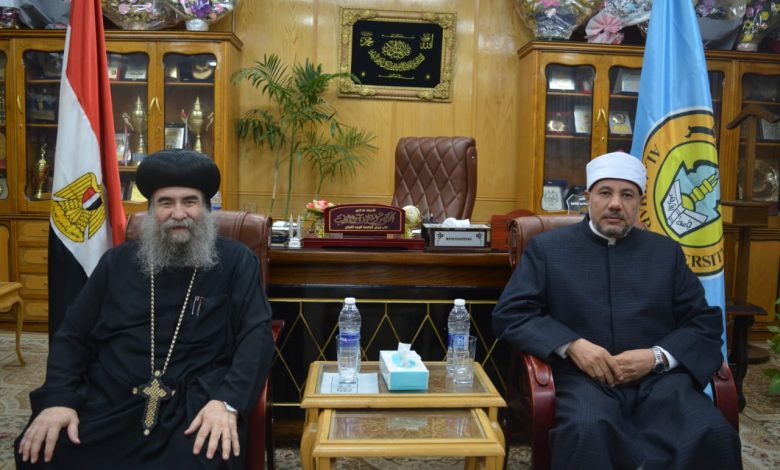 نائب رئيس جامعة الأزهر للوجه القبلي يستقبل الأنبا يوأنس ووفد الكنائس لتقديم التهنئة بعيد الفطر المبارك