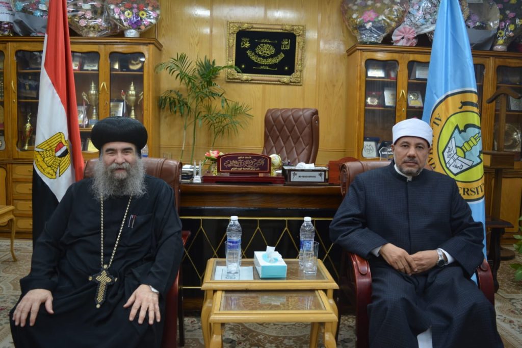 نائب رئيس جامعة الأزهر للوجه القبلي يستقبل الأنبا يوأنس ووفد الكنائس لتقديم التهنئة بعيد الفطر المبارك