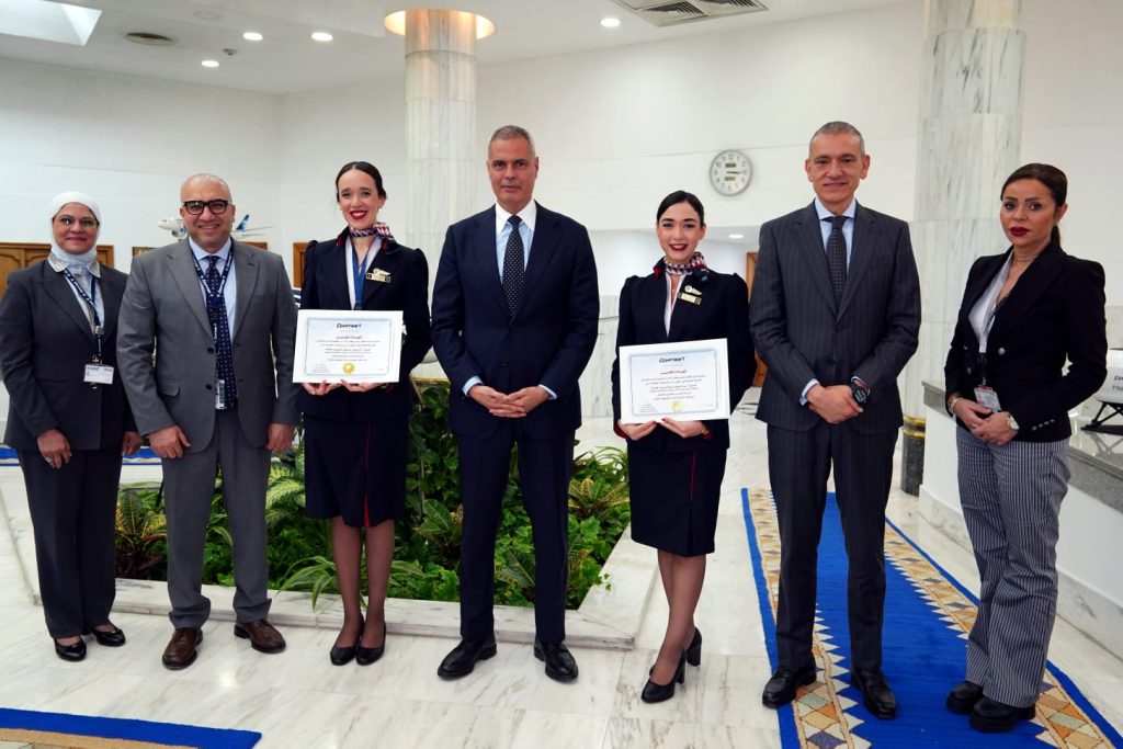 أشاد الطيار أحمد عادل، رئيس مجلس الإدارة والعضو المنتدب التنفيذي للشركة القابضة لـمصر للطيران، بالمستوى المتميز الذي أظهرته ناريمان أبو بكر وسارة هيمن صالح من أفراد الضيافة الجوية بالشركة، وذلك خلال تعاملهم الإنساني والمهني مع أحد الركاب على متن إحدى الرحلات.