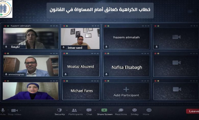 اوصي المشاركون في الحلقة النقاشية التى نظمتها مؤسسة القاهرة للتنمية والقانون بعنوان: “خطاب الكراهية كعائق أمام المساواة أمام القانون: كيف تقوض السرديات المجتمعية وصول النساء إلى العدالة؟” بالإسراع في إصدار قانون إنشاء مفوضية منع التمييز المنصوص عليها في المادة 53 من الدستور المصري، بما يمكنها من رصد أنماط التمييز وخطاب الكراهية واقتراح السياسات اللازمة لمواجهته.