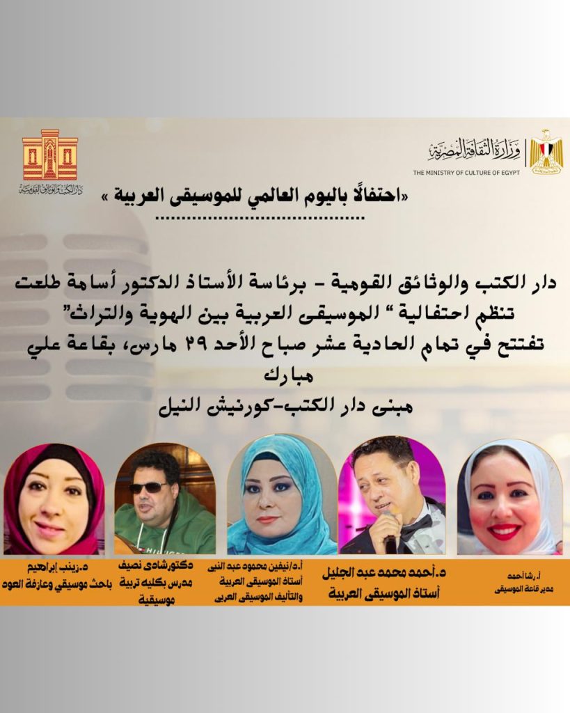 تنظم الهيئة العامة لدار الكتب والوثائق القومية، برئاسة الأستاذ الدكتور أسامة طلعت، احتفالية ثقافية وفنية كبرى تحت عنوان:
