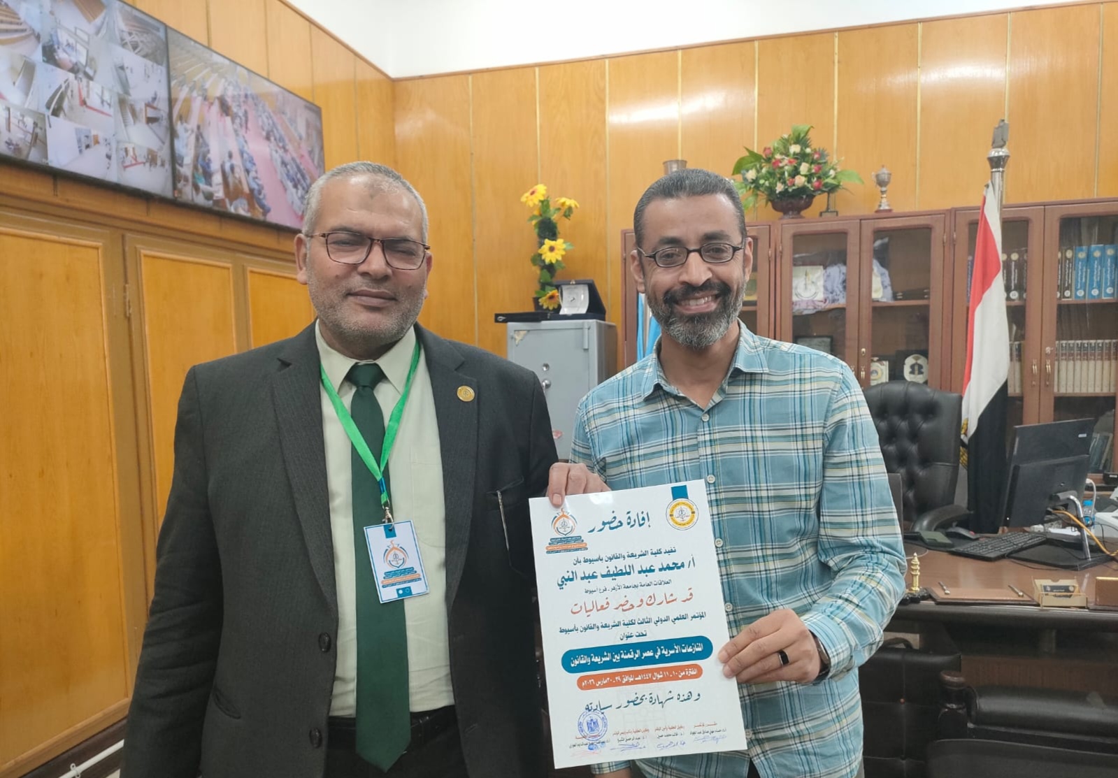 عميد الشريعة والقانون بأسيوط يكرم العلاقات العامة بالفرع للتغطية الإعلامية المتميزة للمؤتمر الدولي الثالث للكلية