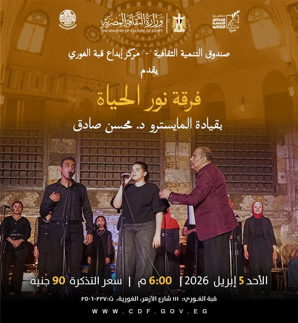 ينظم مركز إبداع قبة الغوري بحي الأزهر، التابع لصندوق التنمية الثقافية، حفلاً موسيقيًا لفرقة “نور الحياة” بقيادة المايسترو الدكتور محسن صادق، وذلك في السادسة مساء الأحد 5 أبريل.