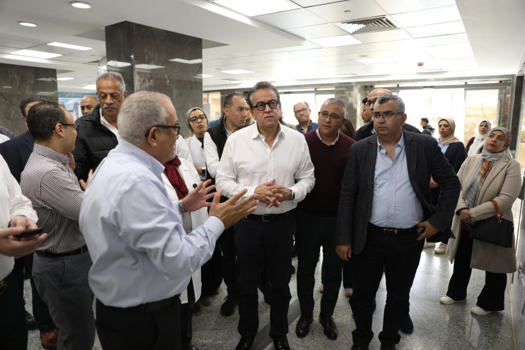 رافق الوزير في جولته كل من: الدكتور بيتر وجيه مساعد الوزير لشؤون الطب العلاجي، والدكتور شريف مصطفى مساعد الوزير للمشروعات القومية، والدكتور أحمد مصطفى رئيس الهيئة العامة للتأمين الصحي، والدكتور محمد عبدالحكيم رئيس الإدارة المركزية للطب العلاجي، والدكتور محمد الصدفي رئيس الإدارة المركزية للرعاية العاجلة والحرجة، والدكتور سيد جلال رئيس الإدارة المركزية للشئون الطبية بهيئة التأمين الصحي، والدكتور محمود مجاهد مدير الإدارة العامة للمكتب الفني بالهيئة، والدكتورة دينا صبحي مدير المستشفى، والدكتور محمد صلاح مدير العيادات بالمستشفى.