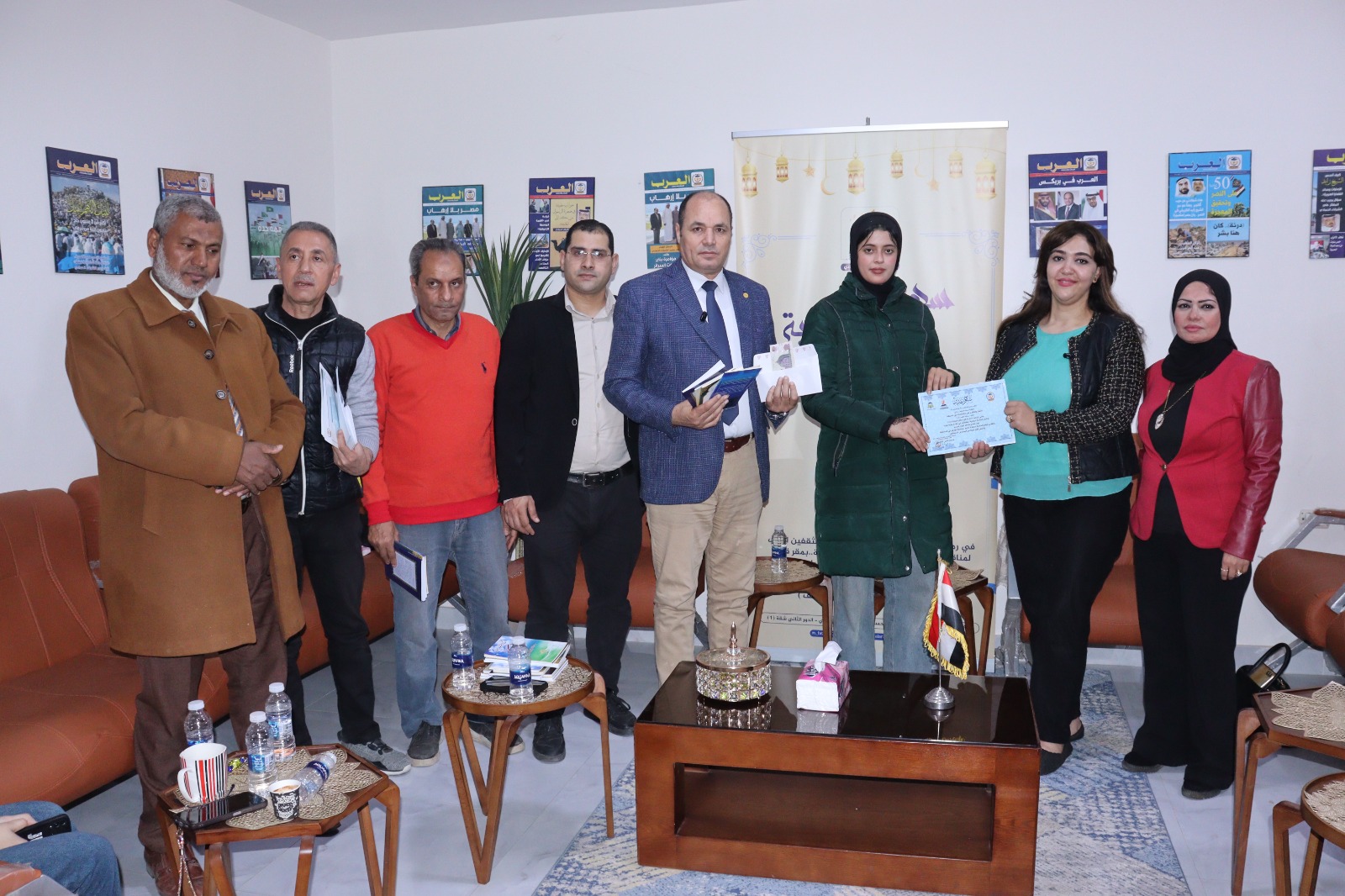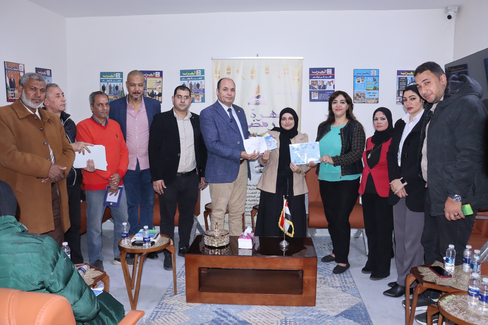 كرم مسؤولو مركز العرب للأبحاث والدراسات؛ محمد فتحي الشريف رئيس المركز، والدكتورة دينا محسن مدير المركز، وعبد الغني دياب رئيس تحرير المركز، فريق عمل “المكتبة الرقمية للشرفاء الحمادي”، وذلك لجهودهم المتميزة خلال شهر رمضان والتي عقدت خلالها سبع ندوات فكرية استضافت عدداً كبيراً من الباحثين والسياسيين والمفكرين، منهم الدكتور أحمد ترك رئيس اللجنة الدينية بمجلس الشيوخ المصري، والصحفي رضا سلام، والصحفي محمد الجوهري، والأستاذ الدكتور عبد الراضي رضوان، عضو مؤسسة رسالة السلام، والكاتب هشام النجار عضو مؤسسة رسالة السلام، والباحث السوري أحمد شيخو، ونخبة من القامات الوطنية والثقافية.