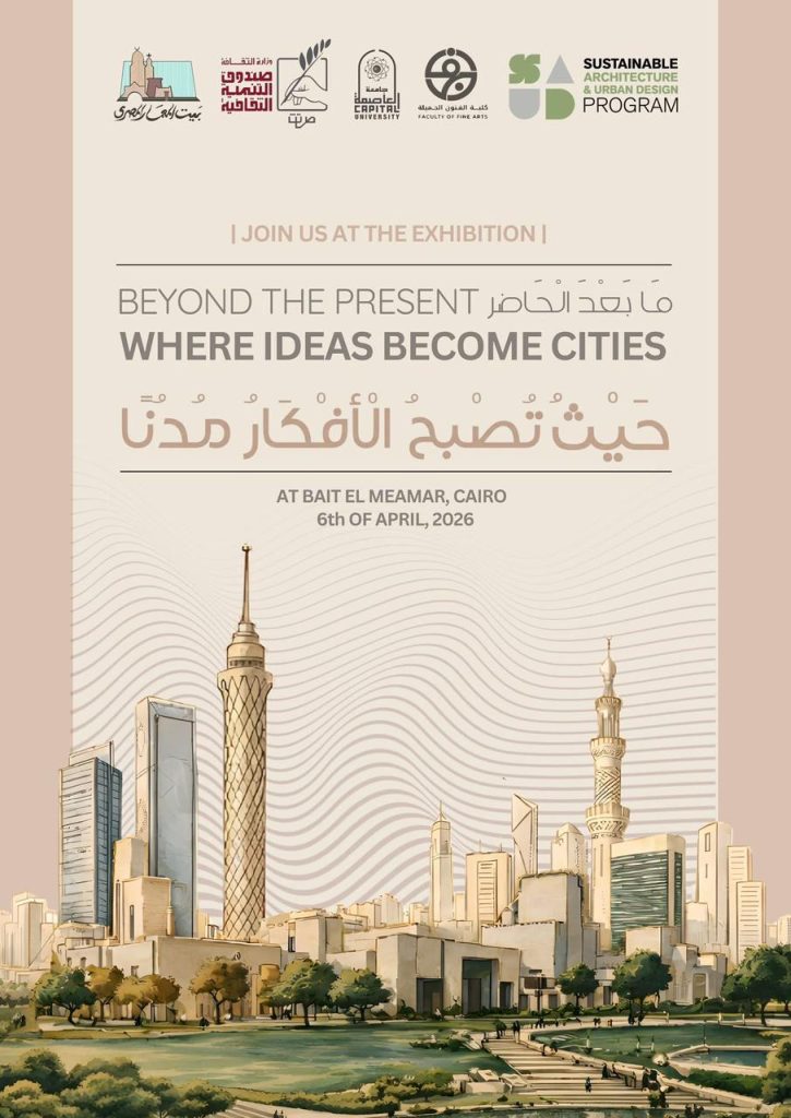 ينظم بيت المعمار المصري، التابع لـ صندوق التنمية الثقافية، معرضًا معماريًا بعنوان “ما وراء الحاضر.. حيث تتحول الأفكار إلى مدن”، وذلك بالتعاون مع برنامج التصميم المعماري والحضري المستدام بكلية الفنون الجميلة بجامعة جامعة العاصمة.