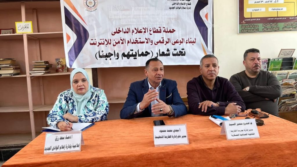 نظّمت إدارة إعلام الوادي الجديد، التابعة للهيئة العامة للاستعلامات، ندوة تثقيفية بعنوان “الوعي وتعزيز الهوية لدى الشباب”، بالتعاون مع إدارة الخارجة التعليمية، وذلك بمقر مدرسة الخارجة الثانوية الصناعية العسكرية، بحضور الأستاذ مجدي محمد محمود، مدير عام الإدارة، والمهندس عمرو سمير، مدير المدرسة، وعدد من الطلاب والمعلمين.