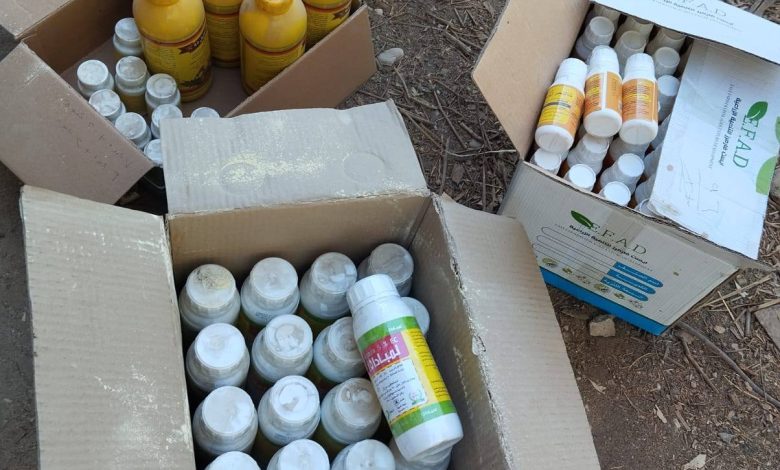 وأضاف أن لجنة متخصصة من قسم الرقابة على الأسمدة والمبيدات بالإدارة العامة للمكافحة بمديرية الزراعة، برئاسة الدكتور أحمد مسعود رئيس الرقابة على الأسمدة والمبيدات، وبإشراف الدكتورة شرين حسين مدير عام المكافحة، نفذت حملة ميدانية أسفرت عن ضبط مخزن يحتوي على كميات من المبيدات المغشوشة، شملت مواد محظورة وأخرى غير مسجلة بوزارة الزراعة، إلى جانب منتجات غير صالحة للتداول والاستخدام.