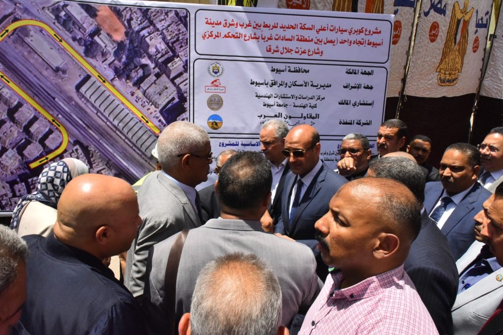 محافظ أسيوط يضع حجر الأساس لكوبري سيارات جديد أعلى السكة الحديد بمنطقة السادات