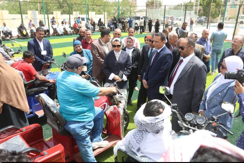 وتضمنت الفعالية تسليم 50 وسيلة دعم حركي وطبي مُجهزة، بتكلفة إجمالية بلغت 3.1 مليون جنيه، شملت 20 موتوسيكل مُجهز طبيًا يتم توفيره لأول مرة بالمحافظة، إلى جانب 30 كرسيًا كهربائيًا متحركًا، في إطار جهود دعم الفئات الأولى بالرعاية وتعزيز التمكين الاقتصادي والاجتماعي لهم.